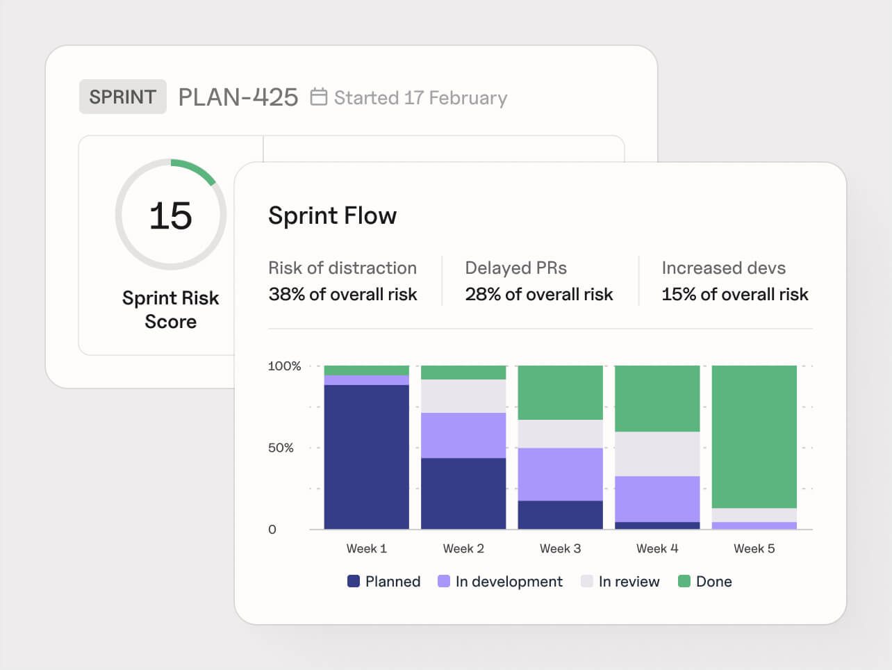 Plandek’s AI combines live signals with your team's historical data footprint to dynamically reforecast delivery dates and score risk in real time. Allowing you to stop sharing what's planned and start showing what will actually ship.