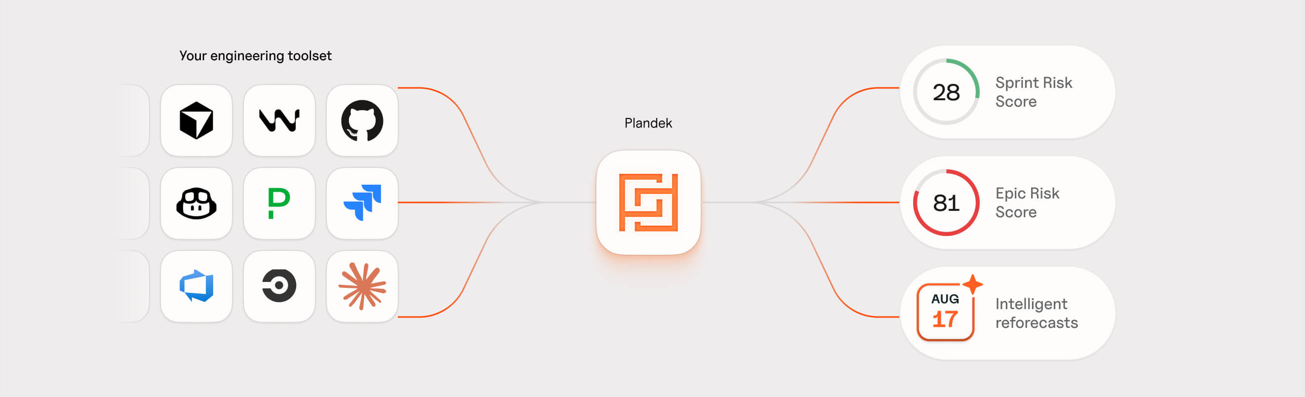 Plandek unifies data from Jira, Git, CI/CD and your wider toolchain and uses AI to surface real progress, predict risk early, and reforecast delivery dates with confidence.