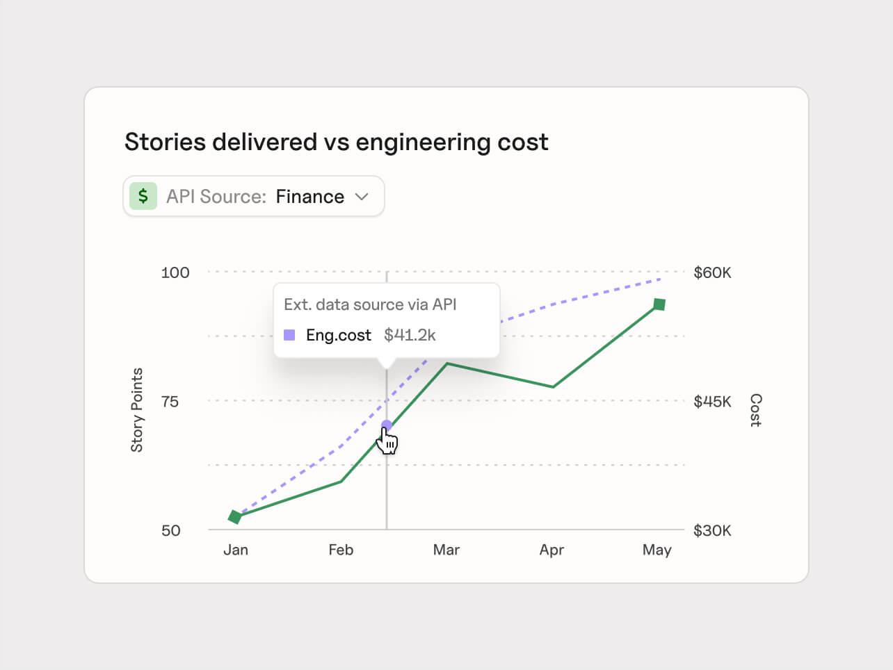 Plandek’s time series API allows you to bring external data sources like financial data together with your engineering data to see the true cost of your initiatives, inform stakeholders, and generate accurate R&D tax credit submissions.