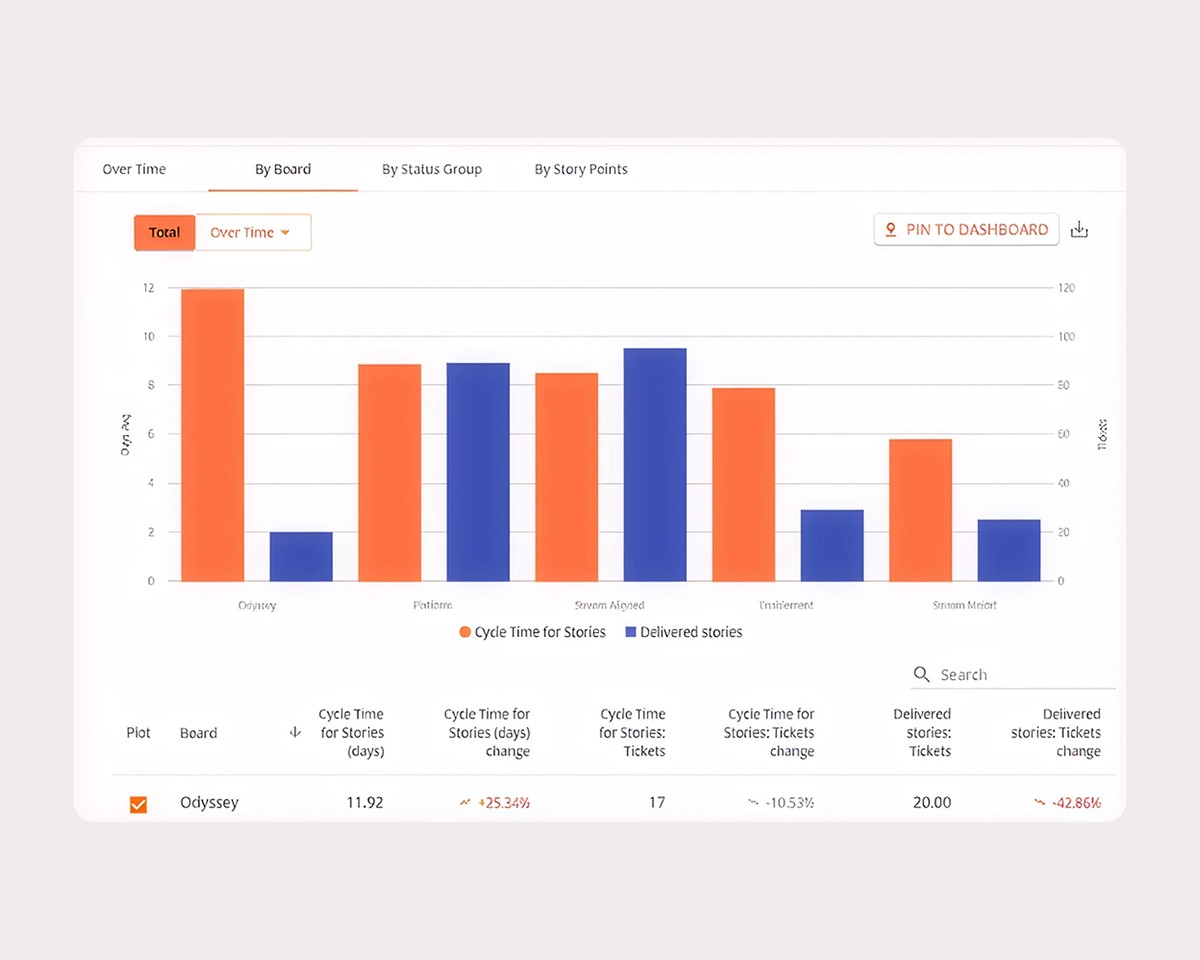 Identify hidden delivery risk, increase velocity and hit delivery goals. Empower managers with real-time insights to unblock teams, drive focus, and consistently deliver on product goals. Plandek surfaces the metrics that matter – so you can steer delivery, improve predictability, and make smarter, faster decisions across your organization.