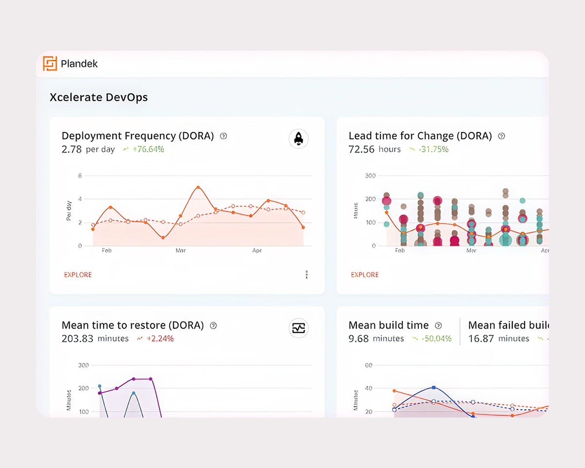 Plandek surfaces the DORA metrics and the Flow metrics if those are your chosen KPIs. However, tracking DORA metrics alone will not drive the improvement you desire.